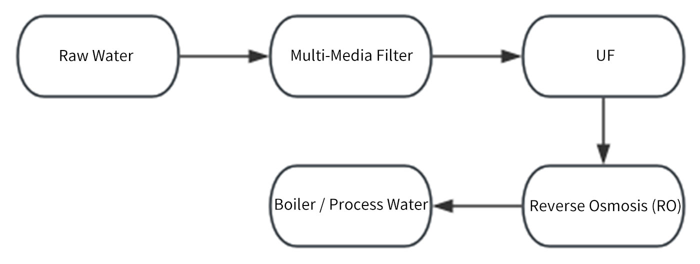 Municipal tap water serves as the raw water source for this project. After dual-pass reverse osmosis (RO) treatment, the product water is supplied as boiler feedwater. All RO systems at the facility utilize our proprietary fouling-resistant membrane elements, which consistently meet operational performance requirements. The system has maintained spec-compliant product water flux and quality since its commissioning in February 2023.